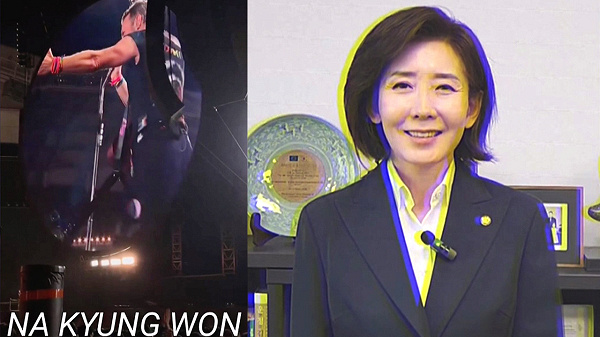 - 드러머 얼굴에 나경원 본인의 얼굴 합성