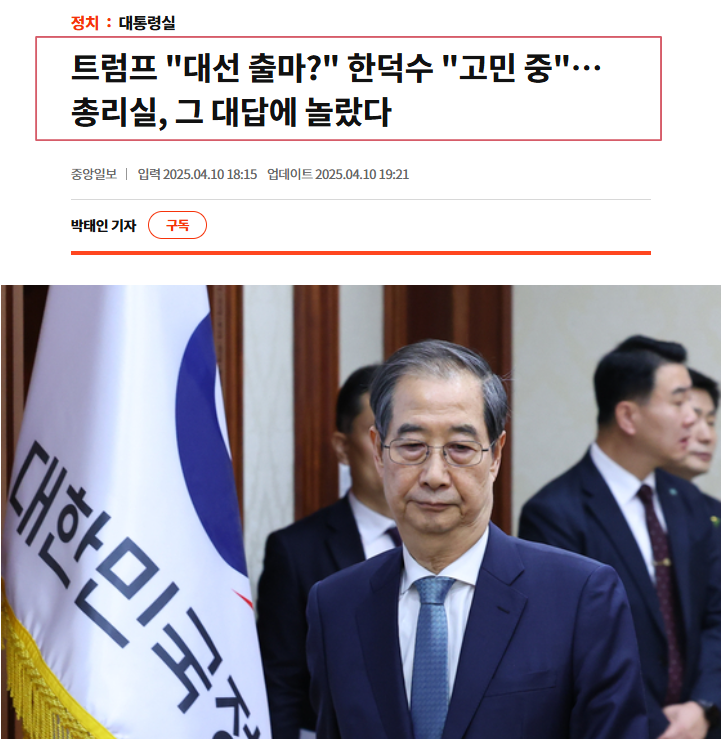 최근 도널드 트럼프 미국 대통령과 한덕수 대한민국 국무총리(권한대행) 간의 전화 통화에서, 트럼프 대통령이 한 총리에게 차기 대선 출마 의향을 직접 물어본 것으로 알려졌습니다.